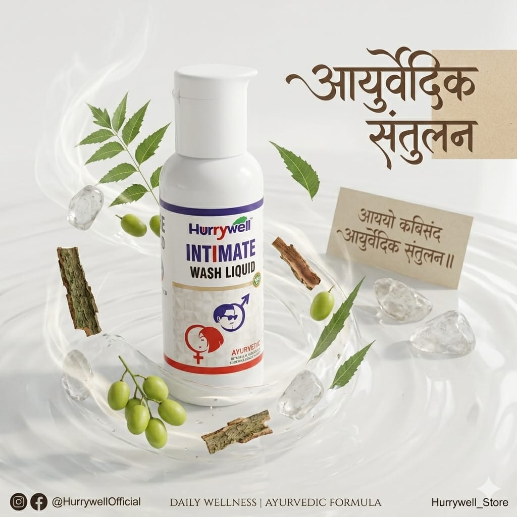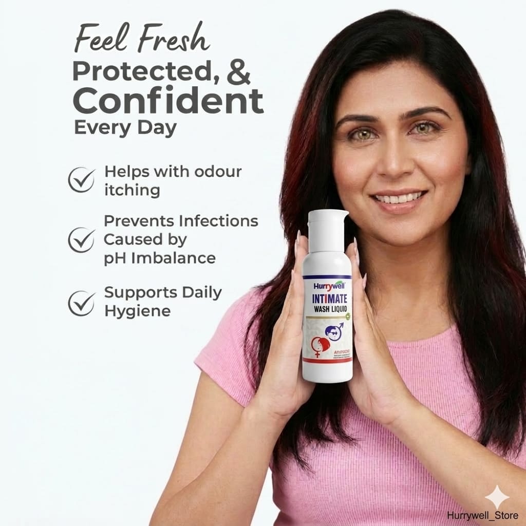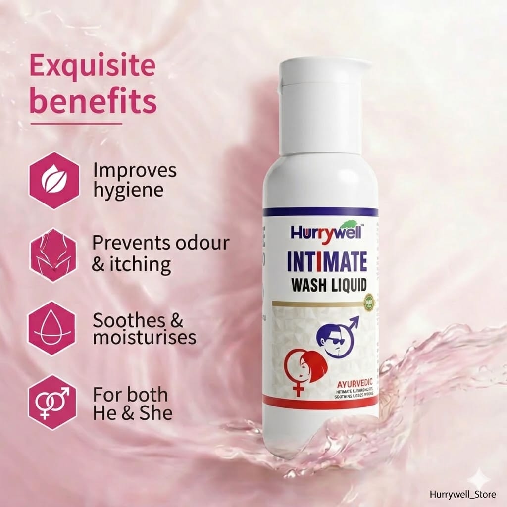 Introducing the Hurrywell Ayurvedic Intimate Wash Liquid – a scientifically crafted herbal hygiene solution for men and women. Developed with the natural power of Neem extracts and Potassium Alum (Fitkari), this gentle wash helps maintain optimal hygiene, supports the natural pH balance, and provides daily protection from irritation, dryness, and infections in sensitive intimate areas.