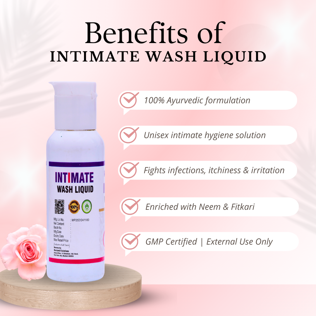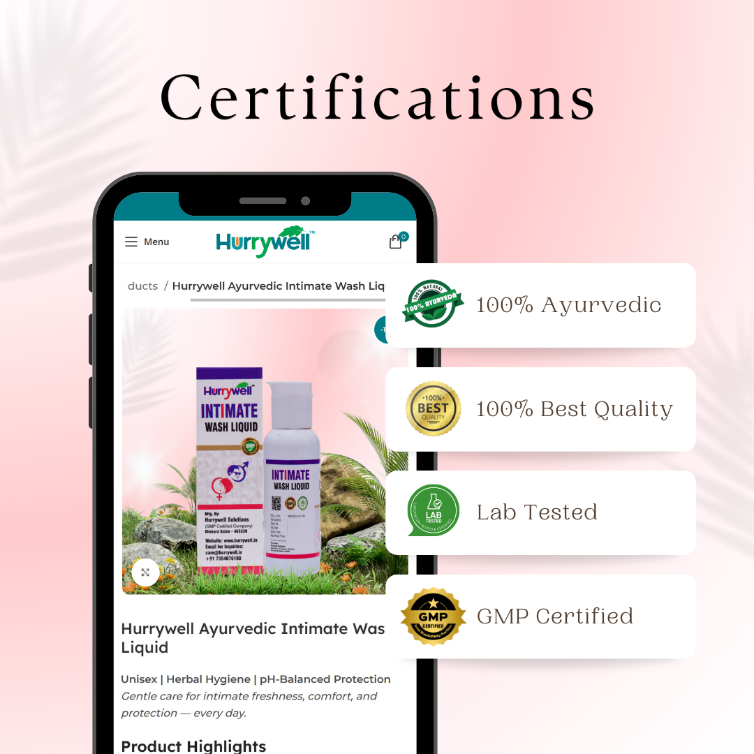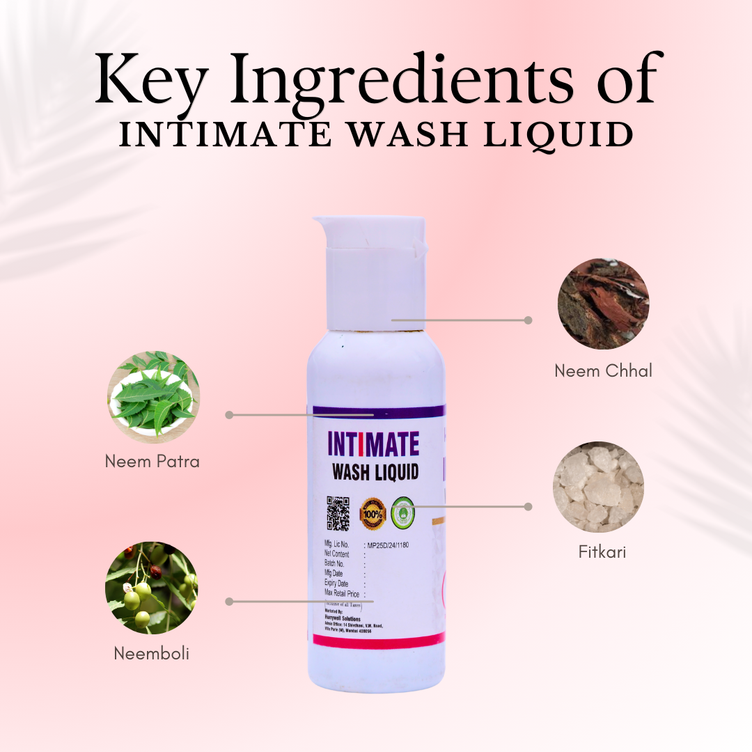 Introducing the Hurrywell Ayurvedic Intimate Wash Liquid – a scientifically crafted herbal hygiene solution for men and women. Developed with the natural power of Neem extracts and Potassium Alum (Fitkari), this gentle wash helps maintain optimal hygiene, supports the natural pH balance, and provides daily protection from irritation, dryness, and infections in sensitive intimate areas.